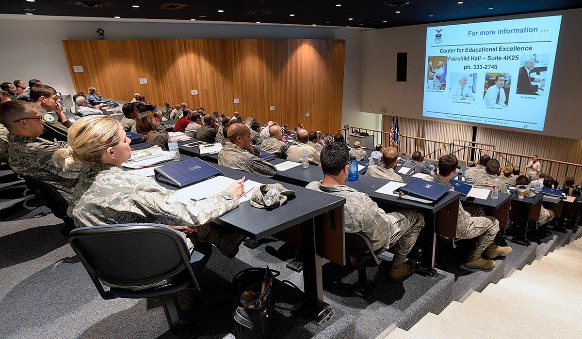 As active duty military officers, all students maintain physical fitness standards per Air Force regulations. Wright-Patterson AFB provides fitness facilities including gymnasiums and running tracks. Physical training is self-directed but must meet annual Air Force fitness assessment requirements.