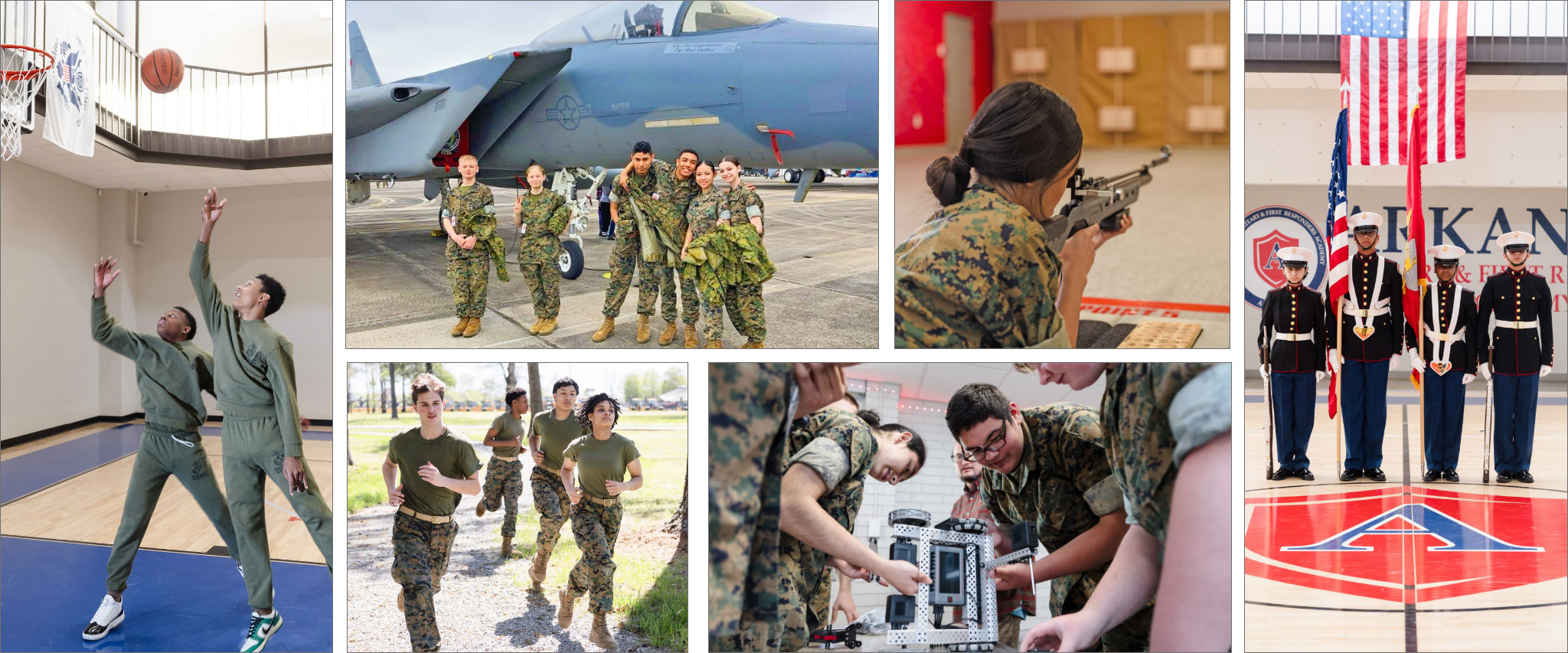As a day school, AMFRA cadets follow a structured military-style schedule during school hours. The day includes morning formation, uniform inspection, and physical training. Academic classes emphasize STEM subjects including pre-engineering, coding, and cybersecurity. All cadets participate in the Marine Corps JROTC program, learning drill, ceremonies, leadership, and military customs. Afternoons include athletics, marksmanship training, or first responder elective courses. Cadets are expected to maintain high standards of appearance, conduct, and academic performance throughout the school day.