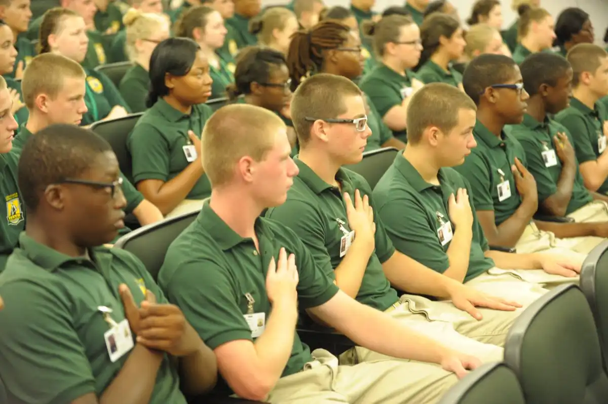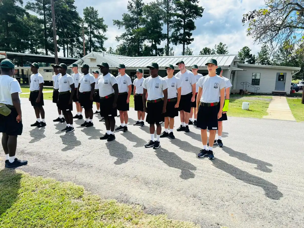 Cadets follow a highly structured military-style schedule during the 5.5-month residential phase. Days include academic instruction with certified teachers, physical training, life skills classes, and community service activities. Students attend school, receive individual counseling, and are supervised 24 hours per day. Weekly phone calls home and letter writing maintain family connections, with a Family Day event and extended weekend home pass during the cycle.