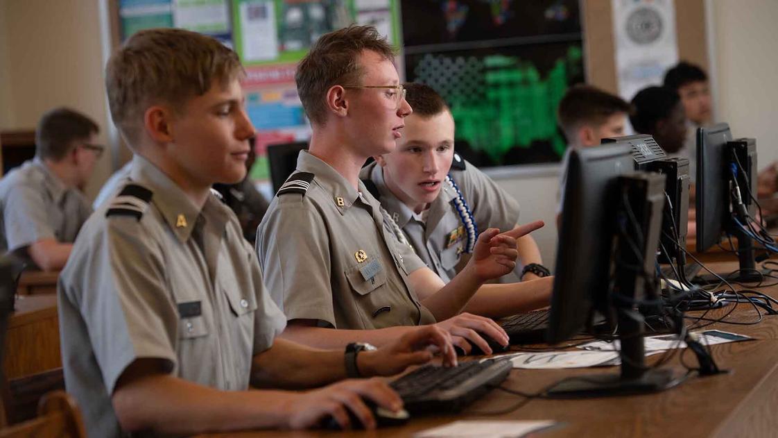 Military model education with mandatory JROTC participation 24/7. Cadets are assigned to Company units housing 40-50 students each in the Kalmenson Barracks. Daily room inspections, peer-led discipline through the cadet chain of command, and communal responsibilities build leadership skills. Higher-ranking cadets oversee lower ranks in daily duties. The structure emphasizes time management, responsibility, and respect for others.